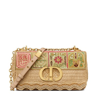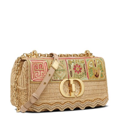 DIOR/迪奥 2021秋冬新款 CARO系列 女士中号彩色刺绣棉布扇形边框CD扭纹扣翻盖封口单肩斜挎包M9249UING_M884